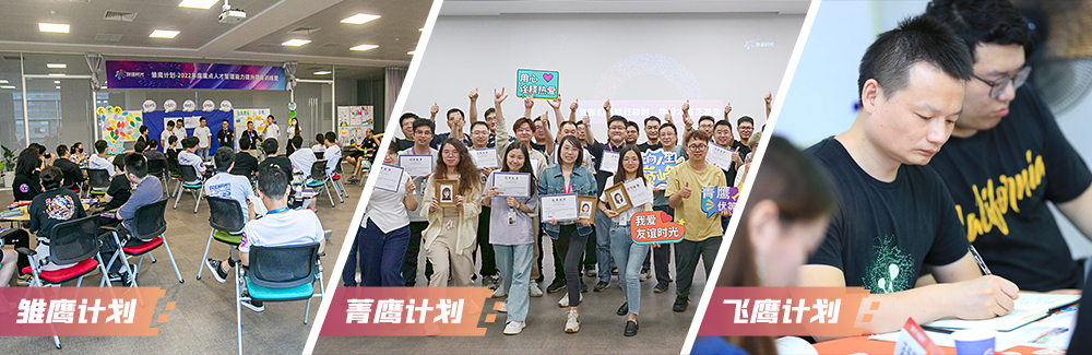 公司针对现有的高管、中层及基层管理者开展为期6个月的管理能力提升项目训练营,通过雏鹰计划、菁鹰计划、飞鹰计划打造管理梯队人才培养,加速管理者从专才到优秀管理者的成长,帮助管理者从关注事到关注人与事,解决实际管理难题。